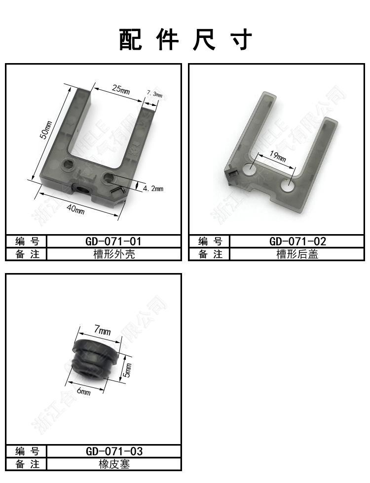 GD-071 G61/G62 光轴槽形光电开关外壳